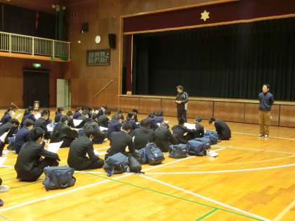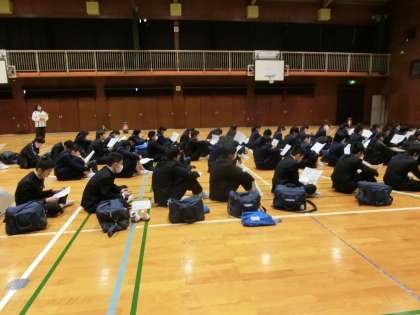 3年生は、5時間目に、明日の私立入試を控え、事前指導を行いました。