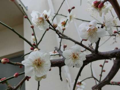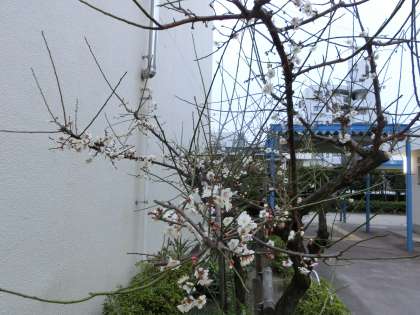 3年生の合格に合わせて、梅の開花が進んでいます。