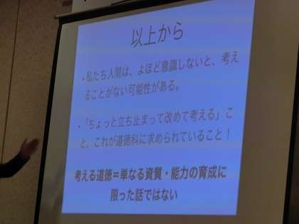 立命館大学の荒木教授から、これからの道徳教育という演題で、貴重なお話を聞くことができました。