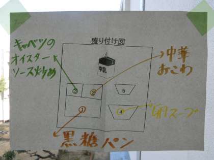 「中華おこわ」「卵スープ」「キャベツのオイスター炒め」です。