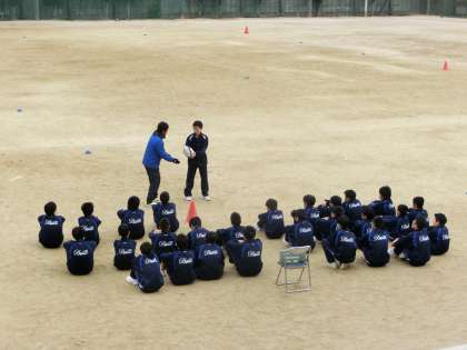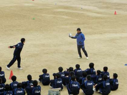 タグラグビーの授業です。