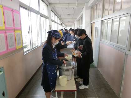 4時間目が終了し、給食準備に入りました。