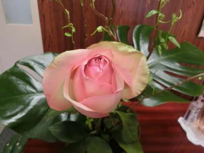 活け花の、フリージャーと薔薇。