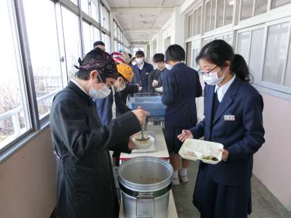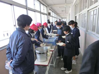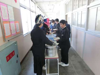 午前中の授業が終了し、給食の配膳が始まりました。