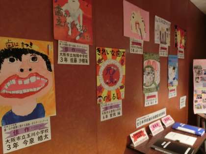歯科に関する啓発ポスターなど、生徒たちの研究作品が輝いています。
