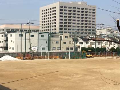 昨日より本校正門(向かって左側)から大領小学校方面に向けてのブロック塀撤去工事が始まりました。