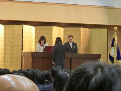 真っ新の体育館が式場で、厳粛な中、担任の先生からの呼名、学級の総代に、校長先生から証書が授与されます。