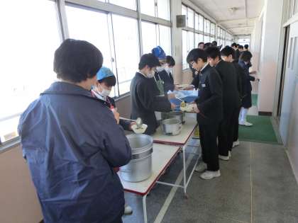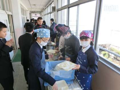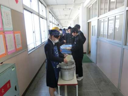 4時間目が終了し、給食の配膳準備が始まりました。