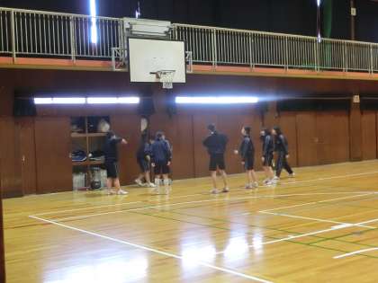 体育館では、女子体育でダンスの授業です。