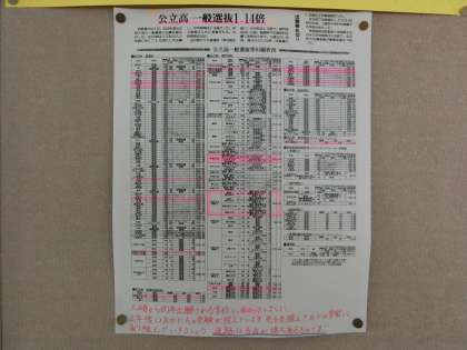 1年生の廊下掲示板に、公立高校の出願状況が張り出されています。
