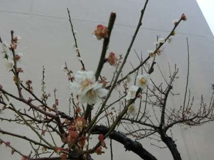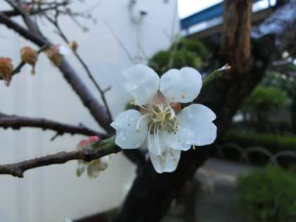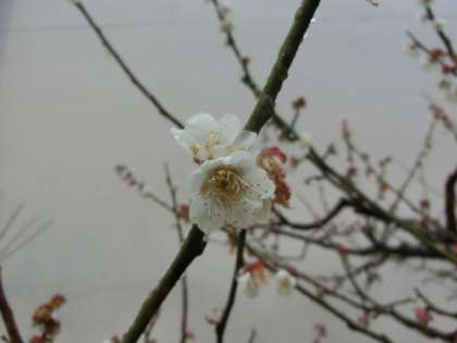激しい雨で、梅の花がかなり散ってしまいました。