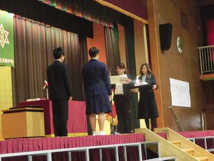 閉式のことばのあと、「卒業記念品」の贈呈が、PTAご代表様からありました。