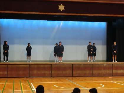 体育館のステージで、体育科創作ダンスの発表が行われました。