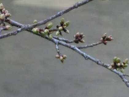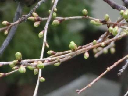 桜の蕾が、丸く膨らみ始めました。