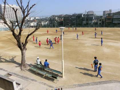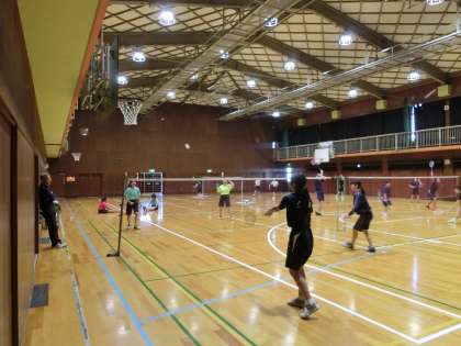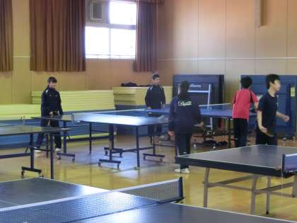 体育館ではバドミントン部が、格技室では卓球部が、グラウンドではサッカー部が頑張っています。
