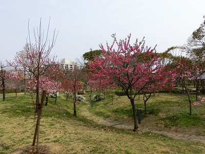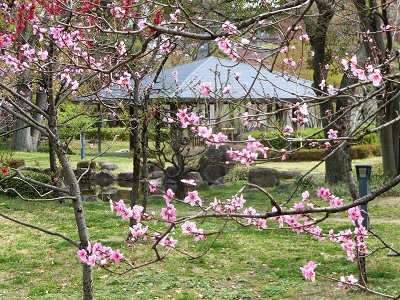 都会の中のオアシス。緑豊かな庭園に、桃や桜の春がやって来ました。