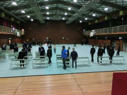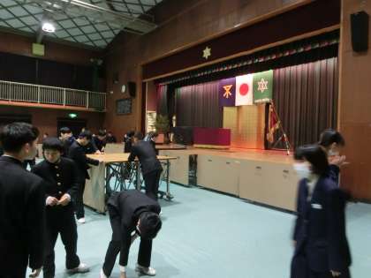 新3年生が式場の準備、新2年生が清掃など外回りの準備に登校してくれました。