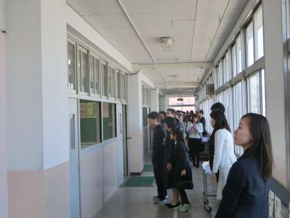 保護者の皆様が、式場での集会を終えて、1年の教室へ。