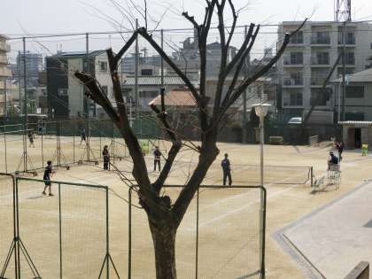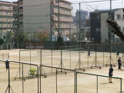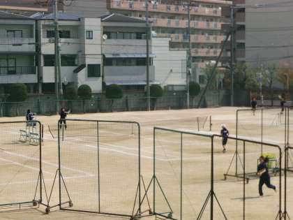 暖かい日差しの中、テニスコートから部員たちの声が聞こえてきました。