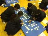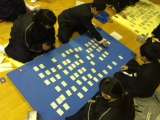 多目的室で百人一首の練習です。上の句で反応し、札を取りあっています。本番が楽しみ...