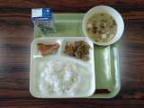 本日の給食の献立は、 あかうおのしょうゆだれかけ なめこのみそ汁 きんぴらごぼ...