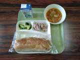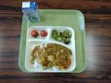 本日の給食の献立は、 鶏肉のバジル焼き ウインナーと野菜のケチャップ煮 ブロッ...