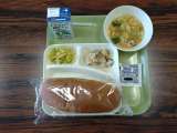 本日の給食の献立は、 ポトフ カレーソテー 焼きプリン コッペパン りんごジャ...