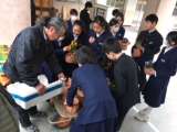 3・4限目の美術では、生徒が作成した植木バチにパンジーを植え込みました。この植木...