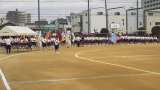 大領中学校第36回体育大会が開会しました。開会式前の行進、2年生学年種目・棒引き...