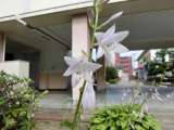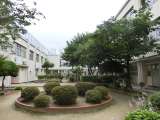 学校は休業日のため、本当に静かです。 中庭では、ひっそりと花が咲いています...