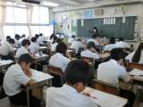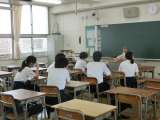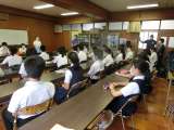 英語の授業。発音練習が廊下まで響いています。 技術の授業。金属加工でキーホルダ...