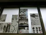 美術室の窓に飾られた生徒作品。 大領水墨画の世界です。 動物、植物、風景など...