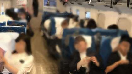 みんな、車内でトランプなどわきあいあい楽しんでいます。