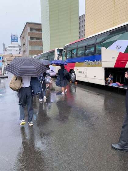 予定していたラフティングですが、川の増水等のため、予定を変更して河口湖クラフトパークに向かいます。