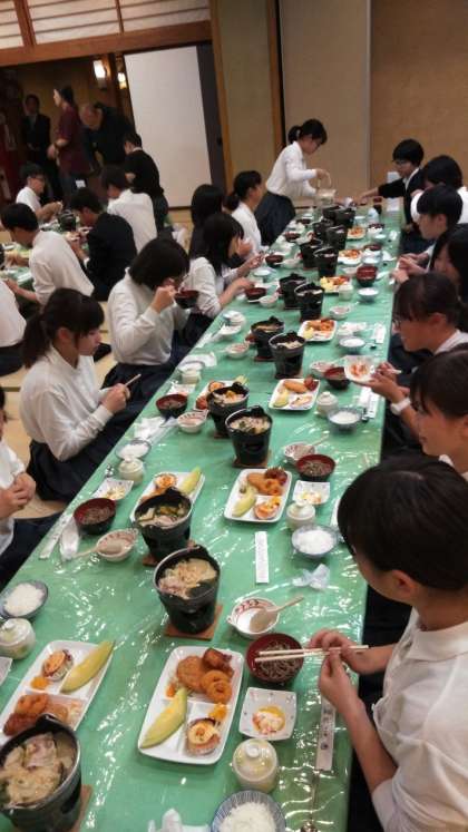 ようやく晩御飯です。皆んなお腹が減っているようで、美味しそうにいただいています。