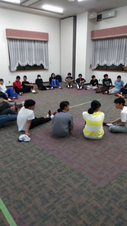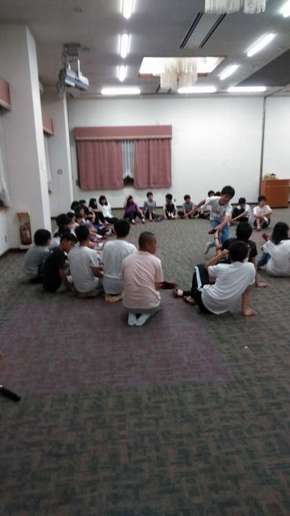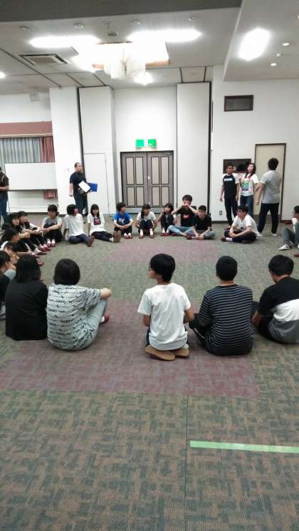 続いて犯人探しゲームです。クラスごとに輪になっています。犯人は別のクラスです。