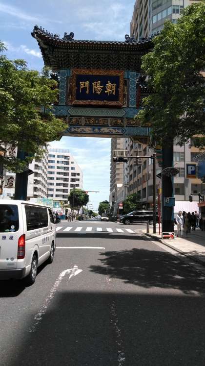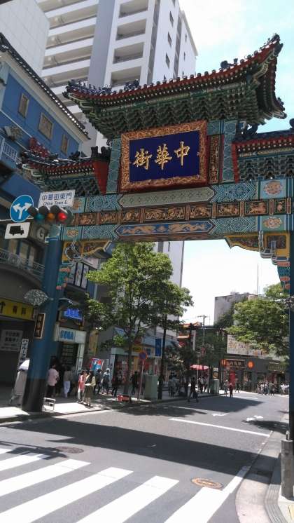中華街の入口です。全ての班が最初に来る予定です。他の学校の修学旅行生徒も訪れています。