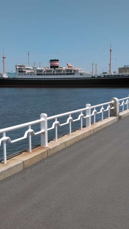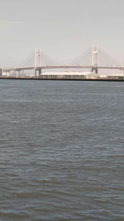 山下公園から見る海です。横浜ベイブリッジが見えます。