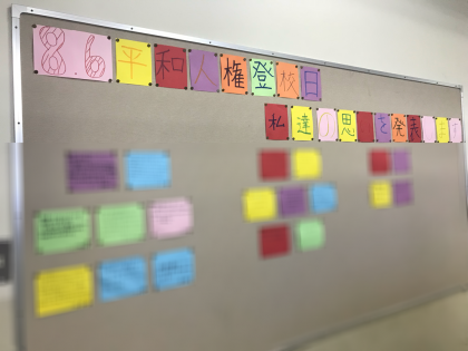 8月6日の平和人権登校日の取り組みの中心となる「8.6実行委員会」が発足。1年生も少しずつ始動しています。