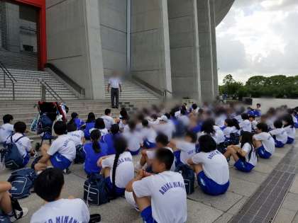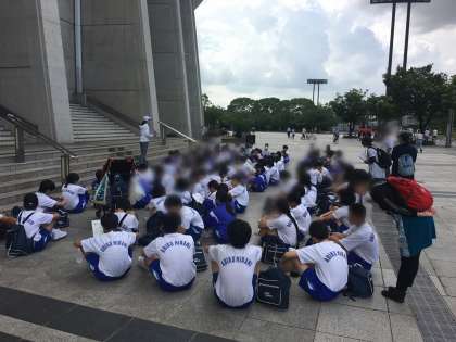 晴天のもと、待ちに待った2年生校外学習がはじまりました。各班の班員がそれぞれの集合時間にそれぞれの集合場所で集まり、長居公園に向かいました。