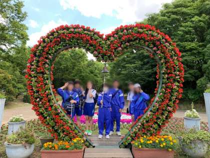 通過ポイントの一つ、長居植物園内ハートのアーチでの様子です。