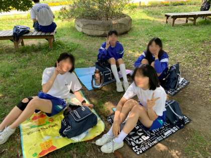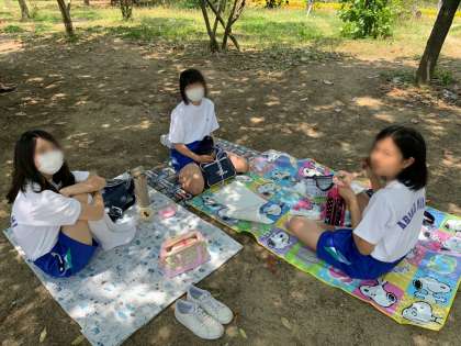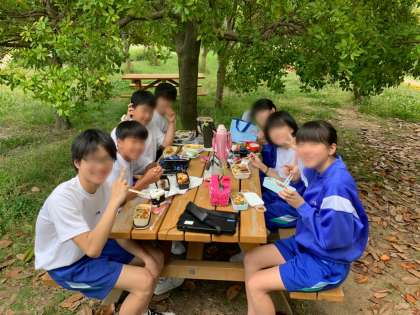 昼食は植物園内でお弁当を食べました。みなさん、良い笑顔ですね!