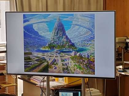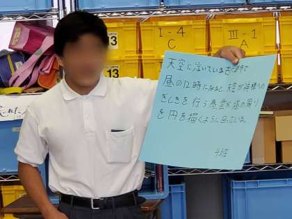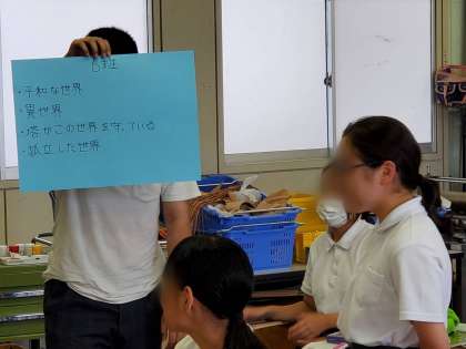 昨日、2年生の美術科の授業では、左の画像の絵画を観賞し、感想を伝える活動をしました。同じ絵でも見る人により感じ方は様々。グループ毎に話し合ったことを、代表者がクラス全体に発表しました。