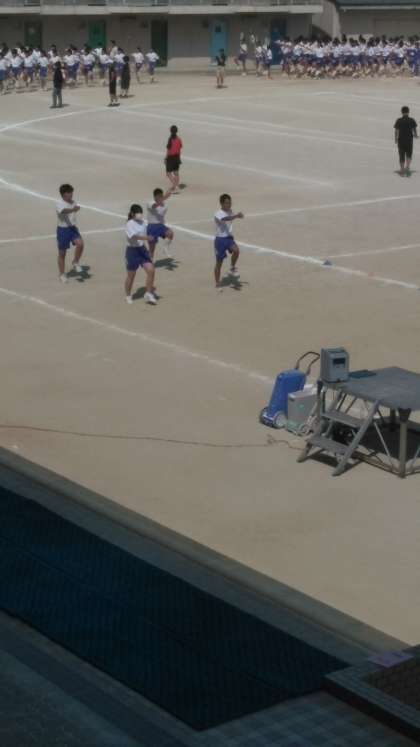 本日、5,6限に体育大会全体練習を行いました。暑い中でも生徒の皆さんは一生懸命取り組んでいました。当日が楽しみです。当日まで怪我をしないようにしてください。