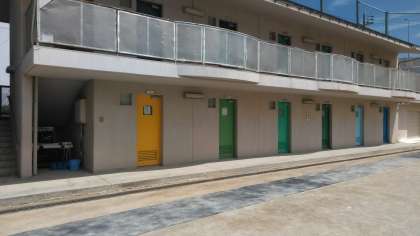 管理作業員さんが、クラブハウスの扉を、色とりどりに、きれいに塗装してくれました。暑い中ありがとうございました。