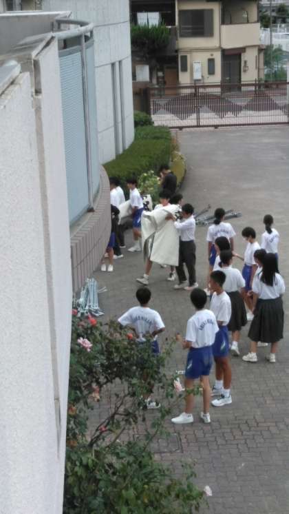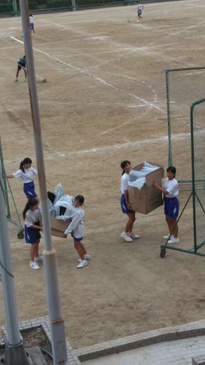 明日の体育大会予行のため、係生徒の皆さんが自分の役割りに、責任感を持って取り組んでいます。ご苦労様です。