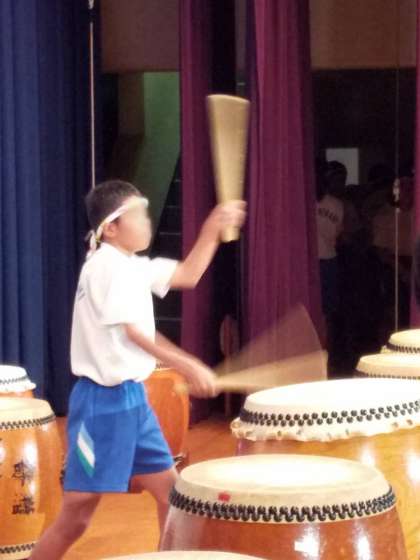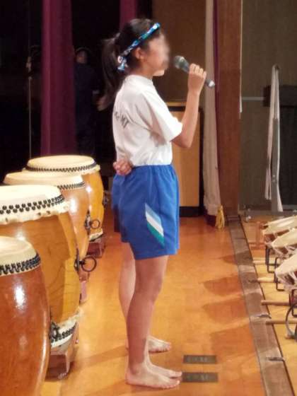 演奏の途中、太鼓委員の代表が、和太鼓の説明、これまでの練習の様子を説明してくれたり、ソロ演奏をしてくれたり。