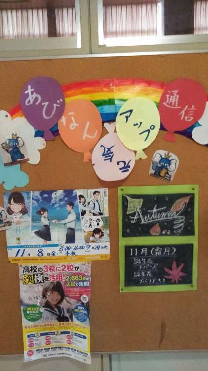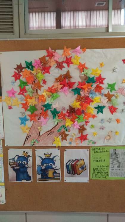図書館の掲示物です。紅葉がきれいです。いつもありがとうございます。