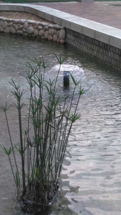 図書館の裏にある池の中に金魚がいます。かわいいですね。
