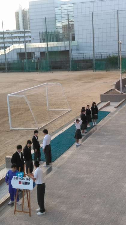 今朝のau運動の様子です。皆んな元気にあいさつ運動をしてくれています。